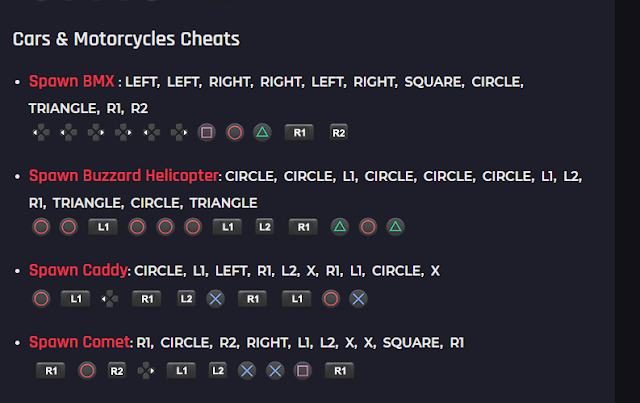 Spawn Duster RIGHT, LEFT, R1, R1, R1, LEFT, TRIANGLE, TRIANGLE, X, CIRCLE, L1, L1