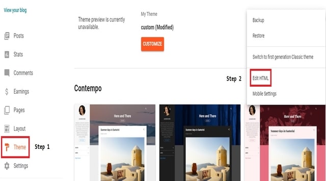 2.Select “Template or Theme” and click on “Three Dots” then Click on “EDIT HTML“.